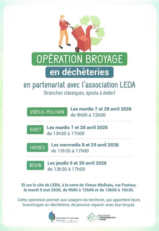 Les habitants qui auront besoin d’une destruction, devront contacter la Communauté de Communes au 03.24.41.50.90 et celle-ci se chargera de…