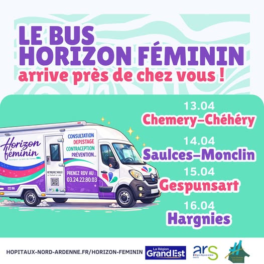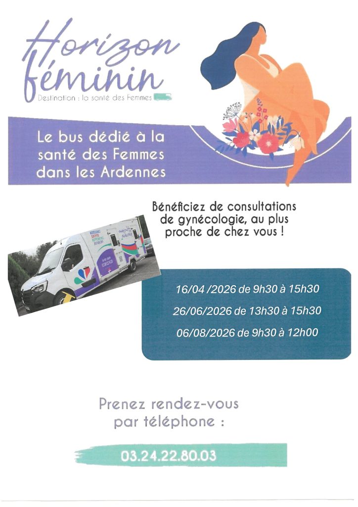 Le bus de consultation gynécologique “Horizon Féminin” se tiendra dans notre commune, devant la salle du Château Le 14/01/2026…