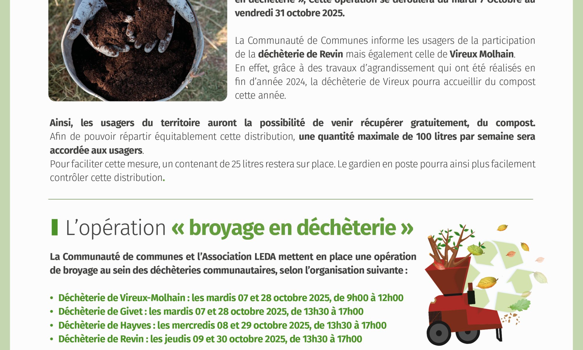 Il est de votre responsabilité de mettre en œuvre une solution alternative (broyage, compostage, paillage, etc) pour éliminer ces déchets. Il existe aussi des filières spécifiques mises en œuvre par les collectivités locales en charge de la collecte, du tri et de la valorisation des déchets (se renseigner en mairie).