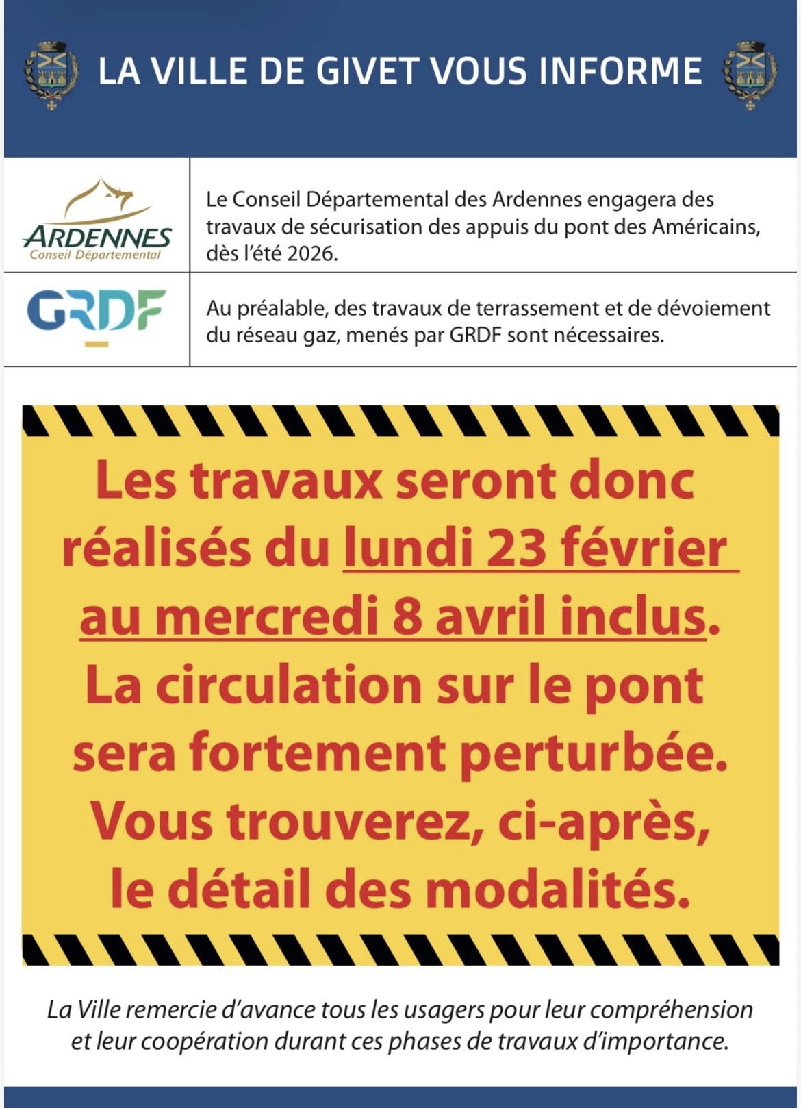 Givet, travaux pont des Américains